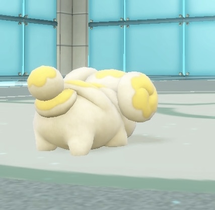 画像の犬ことパピモッチ、ポケモン世代ド真ん中で全世代プレイしている私ですが、「レベル進化のポケモンを進化させず最後まで連れ回ったポケモン」は今回もパピモッチが初めてです。可愛すぎるよー!!進化後の子も可愛いんですけどパピモッチが好きで……こんなモチモチぷにぷになのにフェアリータイプなのでドラゴンやかくとうをワンパンで沈めてくれるおつよい子です