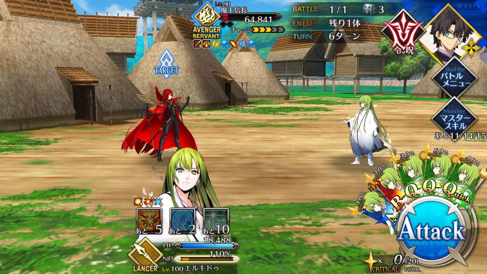 いや強すぎない?王様のズッ友さすがに強すぎない?まがりなりにも高難易度やぞ???無傷6ターンって!!ありがとー!!助かる!!エルキドゥは何気にアーツのNP回収がえげつないのでアーツアップとも相性良いなと今回初めて気が付いた次第……助かる……