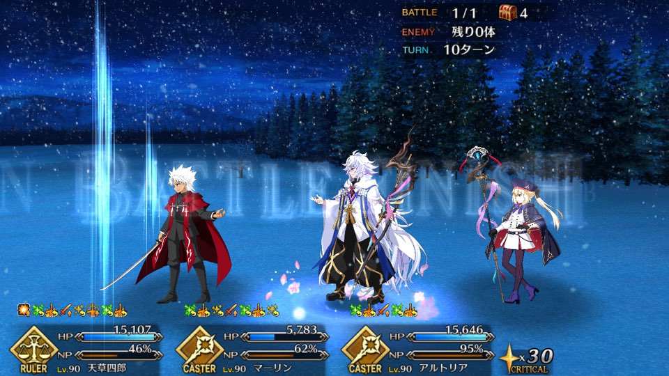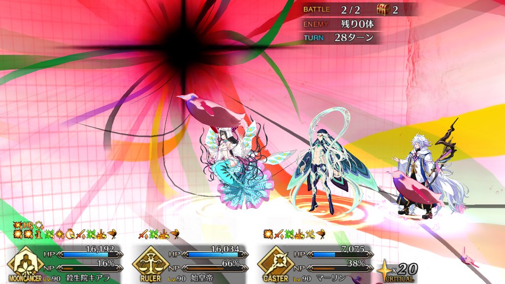 天草の宝具前全体強化解除が強すぎてこれはもはやズルでは……?と思ってしまうほどの天草無双で高難易度滑り込みクリアしました。ありがとう天草!でもこれはさすがにズルでは!?最後に残った茶々ちゃまが幻術や対粛清防御に構わずガーデンオブアヴァロンの回復が間に合わない程に執拗にマーリンを殴るので笑った。確かにこのメンツだとマーリンを殴るしかない
