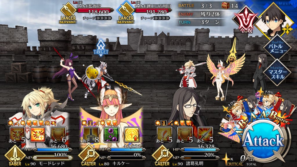 なかなか複雑だった聖杯戦線後半、エルキドゥ単騎でミスターMに突進するだけでクリアできてしまったのでこわい。最後なんて不利クラスのはずのナポレオンを宝具なしで倒しましたからね。画像のエルキドゥ、宝具使うタイミング無くて2.5ゲージくらいチャージしてますからね。王様のズッ友こわい。ムニエルお疲れ様!!!せっかくフランス出身鯖で固めた郷土愛パーティーだったのに、エルキドゥの進撃にアワアワするムニエルの一番傍に控えていたジルがガン無視で微動だにせず笑った。まあムニエルはジャンヌじゃないからね……。前半は朕様が高笑いしながら無傷のままムニエル殴りまくってて自分の指揮ながら笑ってしまった。マジでお疲れ様だよムニエル!!!