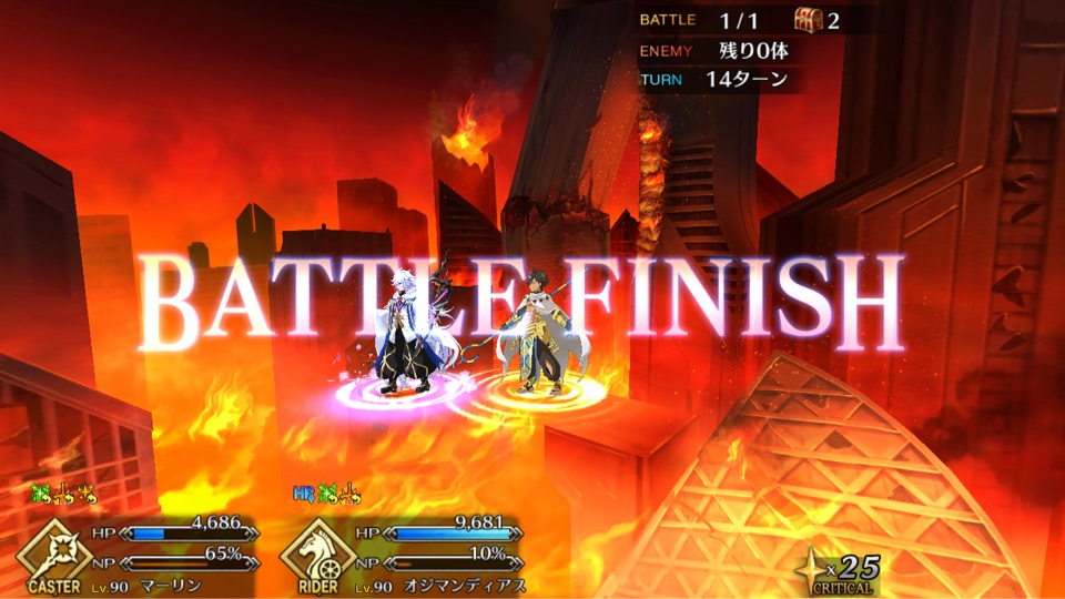 そして後ろでふんぞりかえったまま大した窮地を迎えることなく神を退けたファラオである。有利クラス相手とはいえ王の話と幻術と皇帝特権だけでHP満タンのままフィニッシュっておかしくない!?いつものことにせよあまりにも強すぎておかしくない!?