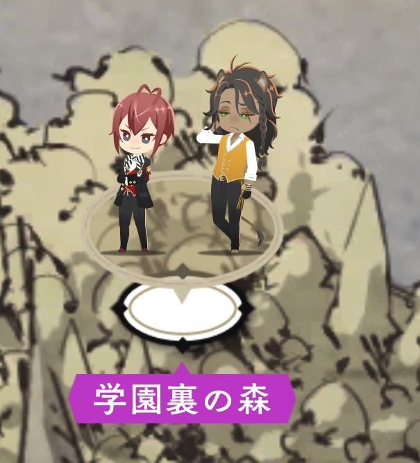 これは寮長会議をサボろうと森で昼寝していたレオナさんを叩き起こすことに成功してドヤ顔のリドルくんと面倒くせーなとなっているレオナさん。素材クエスト、マップが可愛すぎてマップのスクショ撮るだけでも満足なのですが!?