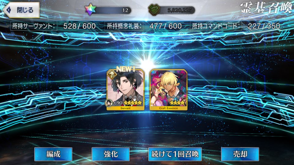FGOのテスラ祭も終わりましたが、あの……礼装全然ドロップしなくて1枚しか凸れなかったんですが……そんなことあります!?ちょっとおかしくない!?私は悲しいしトリスタンも悲しいって言ってる。とりあえずオデュのフルアーマー礼装ありがとう!!顔が良い通常モードも好きだけどアトランティス大好きだからフルアーマーも嬉しい。徐福ちゃん結局実装しなかったけど周年でフレポに来るって信じてるよ。経験値産の男たちも頼むよ。スペース以外で頼むよ!!アッくんはもはや来ないのが誉とまであるけどもちろん来ても良いんだよ
